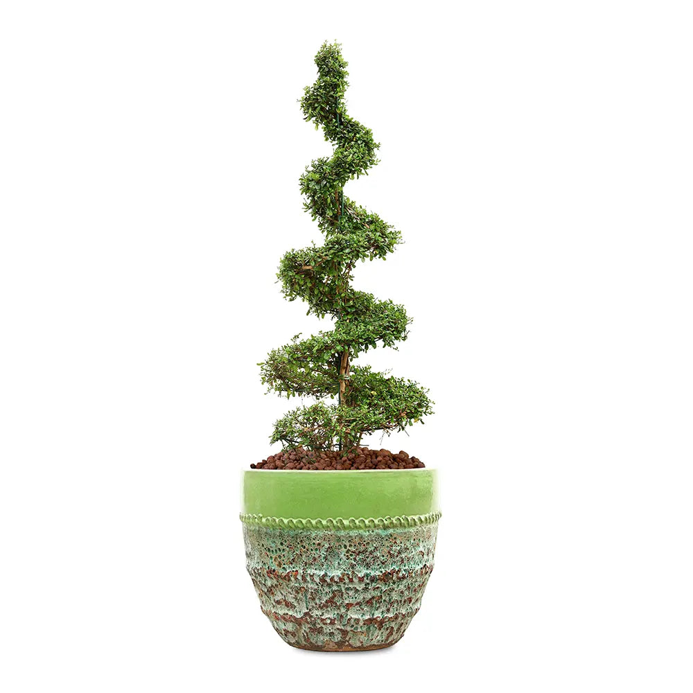 أضف لمسة من الأناقة الاستوائية إلى مساحتك الخارجية مع شجيرة كارمونا ميكروفيلا، وهي شجيرة دائمة الخضرة ساحرة تتميز بأوراقها الرقيقة وأغصانها الرشيقة، مما يجعلها نقطة جذب نباتية راقية. تنمو هذه الشجيرة متعددة الاستخدامات بشكل مثالي في حوض سيراميك ألتيروسا ازرق فاتح الرائع، وتزدهر في المواقع المشمسة من الحدائق، والباحات، والمساحات المُنسقة، مضيفةً جمالًا طبيعيًا ولمسة معمارية مميزة لأي مساحة خارجية.
