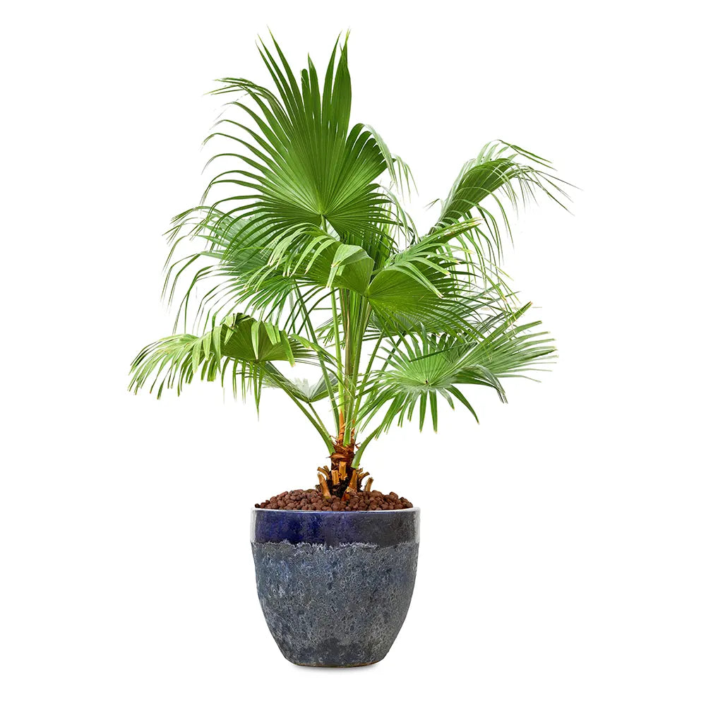 أضف لمسة استوائية أنيقة إلى مساحتك الخارجية مع نخلة ليفستونيا الصينية ، وهي نخلة مروحية رائعة تتميز بسعفها الرشيق والريشي الذي يخلق أجواءً خلابة تُشبه المنتجعات. تنمو هذه النبتة المعمارية بشكل مثالي في حوض ألتيروسا سيراميك أزرق ، وتزدهر في المواقع المشمسة من الحدائق، والباحات، والمساحات المُنسقة، لتُضفي لمسة نباتية راقية وجمالًا طبيعيًا على أي مساحة خارجية.