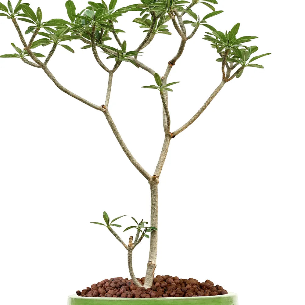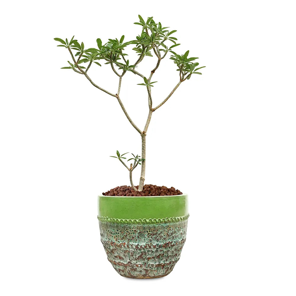 أضف لمسة استوائية أنيقة إلى مساحتك الخارجية مع نبات البلوماريا ، وهو نبات مزهر خلاب يشتهر بأزهاره العطرة والفريدة وأوراقه الخضراء الوارفة. يُقدم هذا النبات الجميل في حوض سيراميكي أنيق بلون أزرق مائي ، وينمو بشكل مثالي في الحدائق المشمسة والباحات والمساحات الخضراء، ليضفي سحرًا طبيعيًا وألوانًا زاهية على أي مكان خارجي.