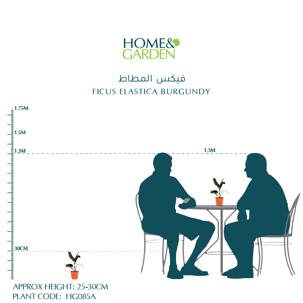 | وصف : | Ficus Elastica 'Burgundy' هو صنف شائع من نبات المطاط Ficus Elastica. وهي معروفة بأوراقها ذات اللون العنابي المذهل، والتي تميزها عن الأصناف التقليدية ذات الأوراق الخضراء. يتميز النبات بأوراق كبيرة لامعة تكون عادةً بيضاوية الشكل ولها ملمس جلدي. |