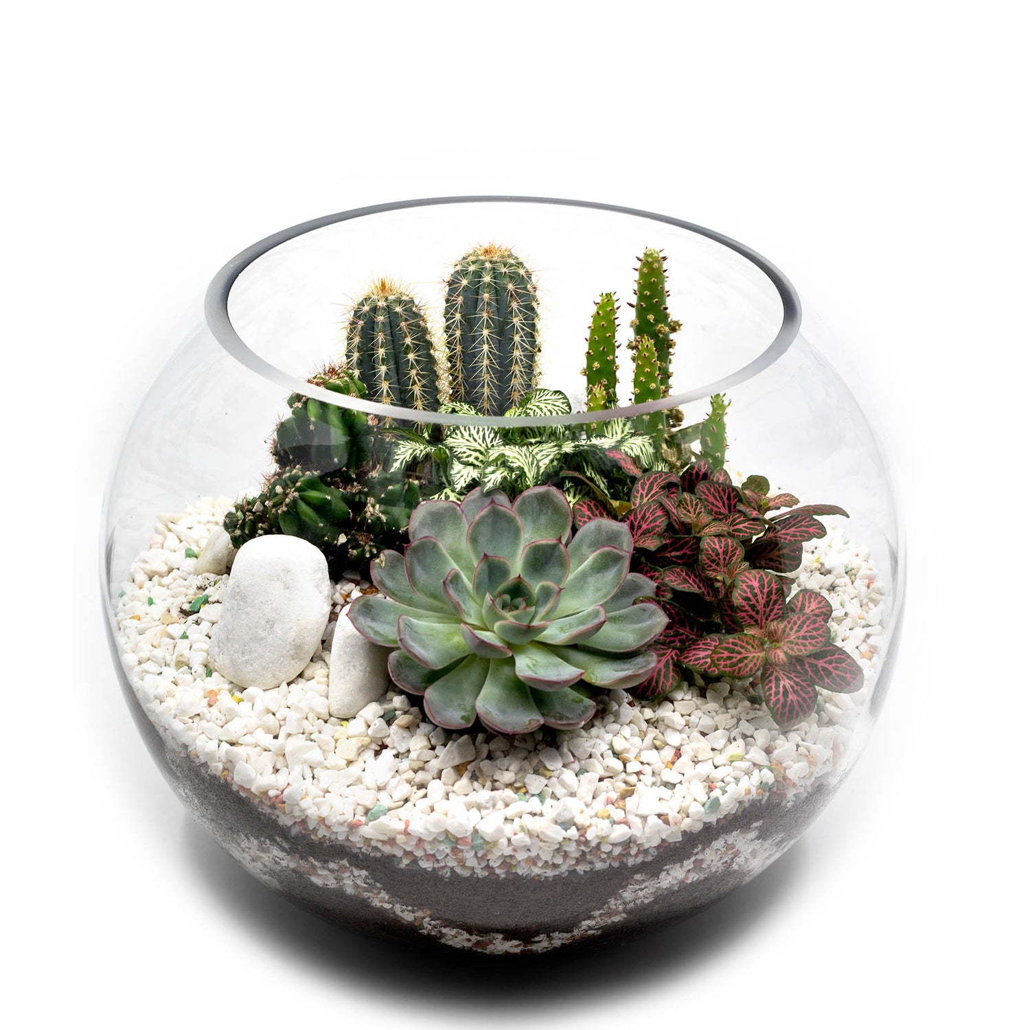 احصل على مجموعة رائعة من نباتات الصبار والعصاريات المتنوعة في تيراريوم 5، مثالية لأي مساحة. استمتع بجمال وفوائد هذه النباتات سهلة العناية، والمعروفة بتحسين جودة الهواء وتقليل التوتر. مع وعاء تيراريوم فريد، تُضفي هذه المجموعة لمسة طبيعية على أي غرفة.
