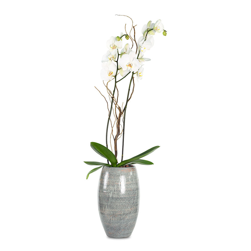 تنسيقة أنيقة من زهور الأوركيد، مُقدمة في حوض يامبورك تقليدية، تجمع بين الرقي النباتي والبراعة الفنية. يزدهر هذا النوع المختار بعناية من زهور الأوركيد في هذه الحوض الخاص، يُضفي لمسةً زخرفيةً مميزةً على الديكورات الداخلية العصرية والتقليدية. تتطلب الحد الأدنى من الصيانة لتأثير بصري فائق.