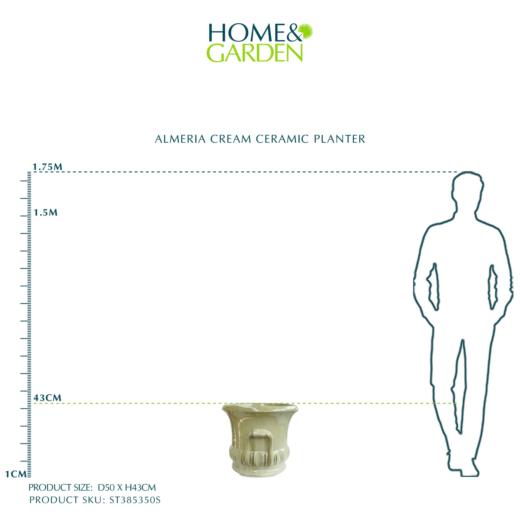 يجمع وعاء زراعة ألميريا الكريمي الخزفي بين التصميم الأنيق والحرفية المتينة، مما يجعله خيارًا راقيًا لعرض نباتاتك. يُكمل لونه الكريمي الناعم مجموعة متنوعة من أنماط الديكور، بينما تضمن مادة السيراميك عالية الجودة متانة وثباتًا يدومان طويلًا. مثالي للاستخدام الداخلي والخارجي، يُضفي هذا الوعاء لمسةً راقية على مساحاتك الخضراء.