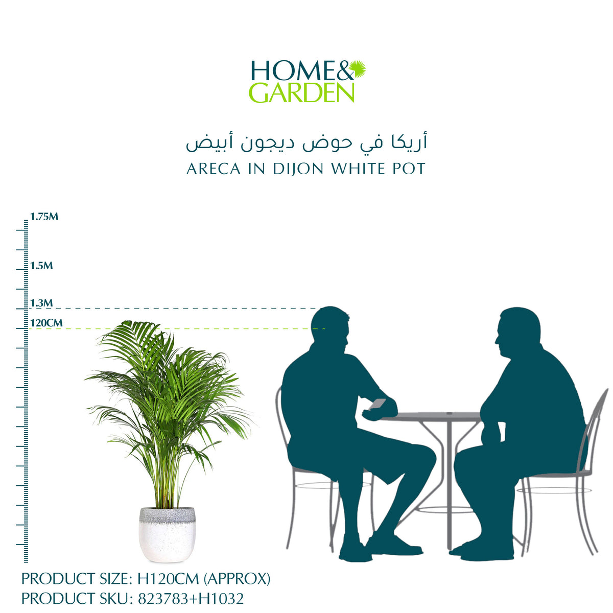 نخلة الأريكا في حوض ديجون الأبيض تجمع بين الخضرة اليانعة والجماليات العصرية النظيفة. تشتهر نخلة الأريكا بخصائصها المنقية للهواء، وتزدهر في الضوء غير المباشر ولا تتطلب عناية كبيرة، مما يجعلها خيارًا ممتازًا للمنازل والمكاتب. يوفر حوض ديجون الأبيض خلفية نقية ومحايدة تُكمل مختلف أنماط الديكور الداخلي،. هذا الاختيار المتقن يُضفي جمالًا طبيعيًا على أي مساحة ويُحسّن جودة الهواء.