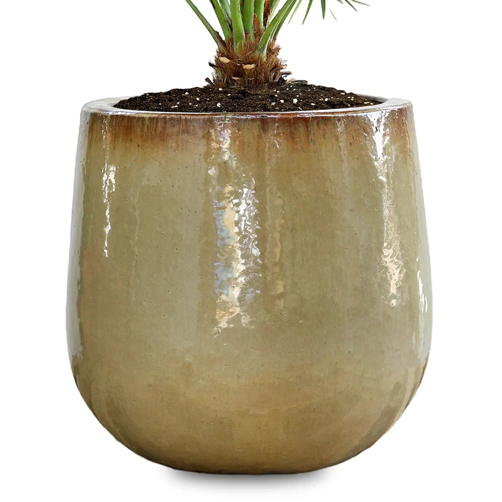 شاميروبس هوميليس في حوض سيراميك جيندت الكريمي، تتميز بنخلة قزمة متوسطية متينة. تزدهر هذه النخيل متعددة الاستخدامات في المساحات الخارجية المحمية، مما يُحسّن جودة الهواء ويضفي لمسة معمارية مميزة. يُبرز حوضها الأبيض الناصع أوراقها الخضراء الغنية، مما يجعلها خيارًا ممتازًا للخبراء الذين يبحثون عن مزيج من الأناقة والمرونة في اختياراتهم من النباتات.