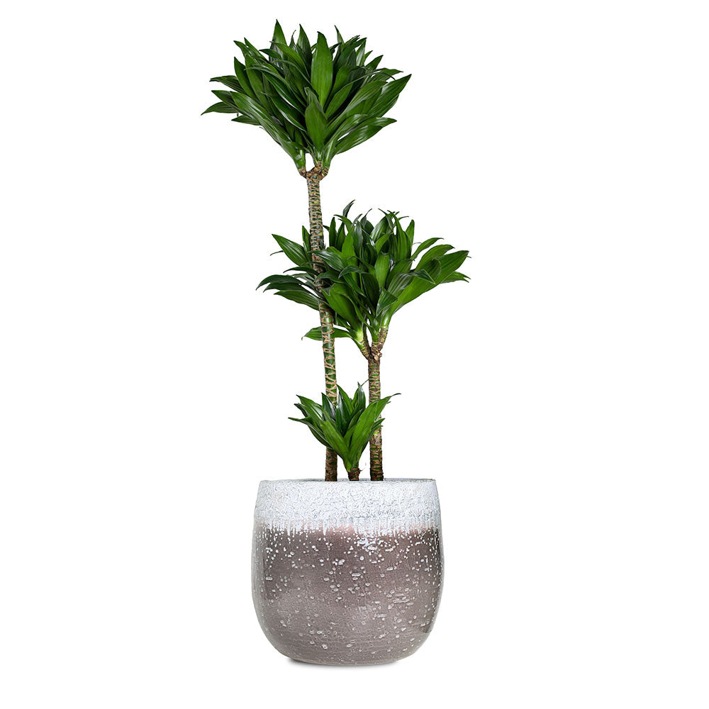 تُضفي نبتة الدراسينا كومباكتا في حوض سيراميك بلون رمادي ثلجي مزيجًا راقيًا من الأناقة والخضرة، مثاليةً للارتقاء بالبيئة الداخلية. تُقدّر نباتات الدراسينا لمرونتها وقدرتها على تحسين جودة الهواء الداخلي، حيث تنمو في ضوء غير مباشر معتدل مع الحد الأدنى من العناية. مثاليًا لإضافة جمال طبيعي دائم وأجواء هادئة إلى أي مساحة.