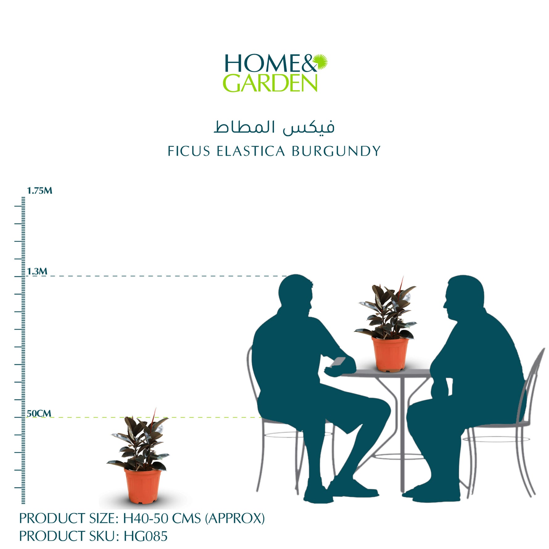 سعر الوحدة / لكلفيكس إليستيكا "بورغندي" صنف شائع من نبات المطاط. يشتهر بأوراقه ذات اللون العنابي الأخّاذ، مما يجعله مختلفًا عن الأصناف التقليدية ذات الأوراق الخضراء. يتميز النبات بأوراق كبيرة لامعة، بيضاوية الشكل عادةً، وملمس جلدي.