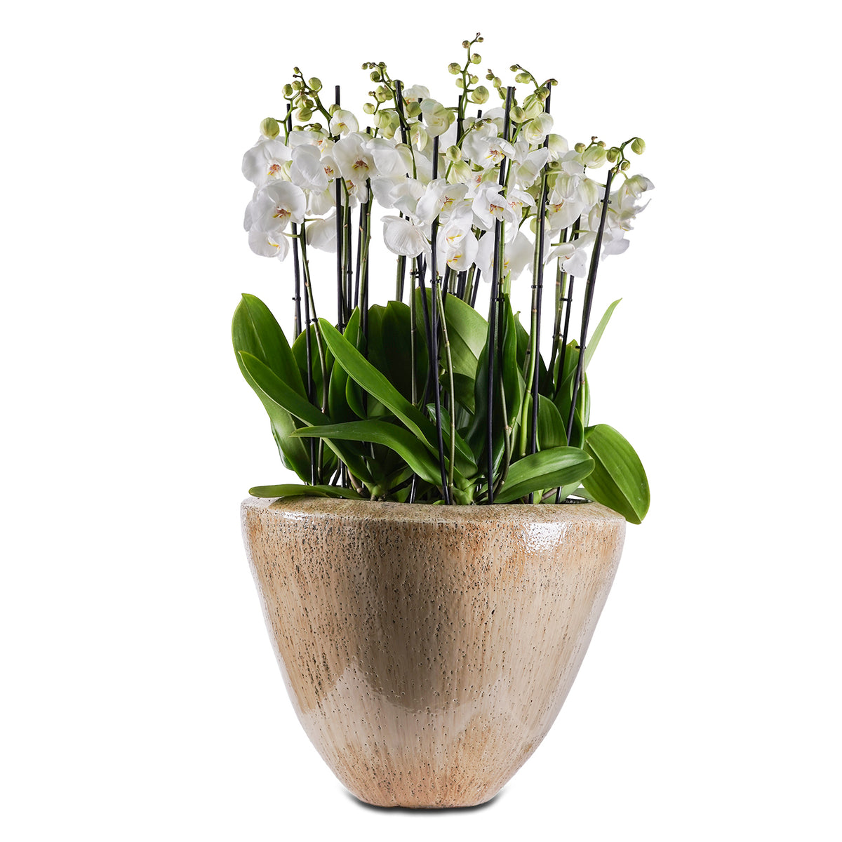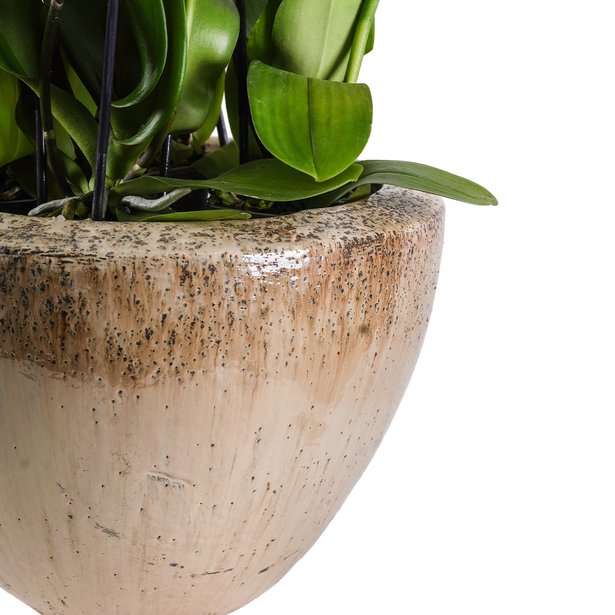يجمع حوض الأوركيد الكريمي بين الجمال الرقيق للأوركيد المزهر. صُمم هذا الحوض ليجمع بين الجمال الطبيعي وصحة النبات. مثالي للديكورات الداخلية الأنيقة، إذ يضفي لمسة من الرقي الطبيعي دون الحاجة إلى عناية كبيرة.