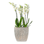 ارتقِ بديكور منزلك مع هذه التشكيلة الأنيقة من زهور الأوركيد، والمُقدمة في حوض أنيق باللون الرمادي النيلي. يُضفي التباين الدقيق بين أزهار الأوركيد الرقيقة والحوضذي اللون الداكن لمسةً راقية، مثاليةً لإضفاء لمسة جمالية على أي مساحة معيشة أو عمل. صُممت هذه القطعة لتجمع بين الجمال الطبيعي والتصميم العصري، وتُضفي لمسةً جماليةً خالدةً تُكمل مجموعةً متنوعةً من الأنماط، مع الحد الأدنى من الصيانة. مثالية لمن يبحثون عن لمسة ديكورية أنيقة ودائمة.