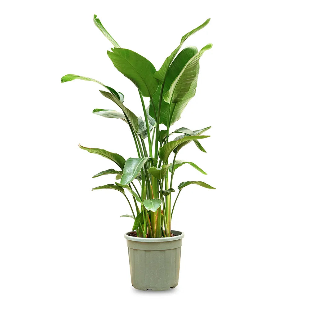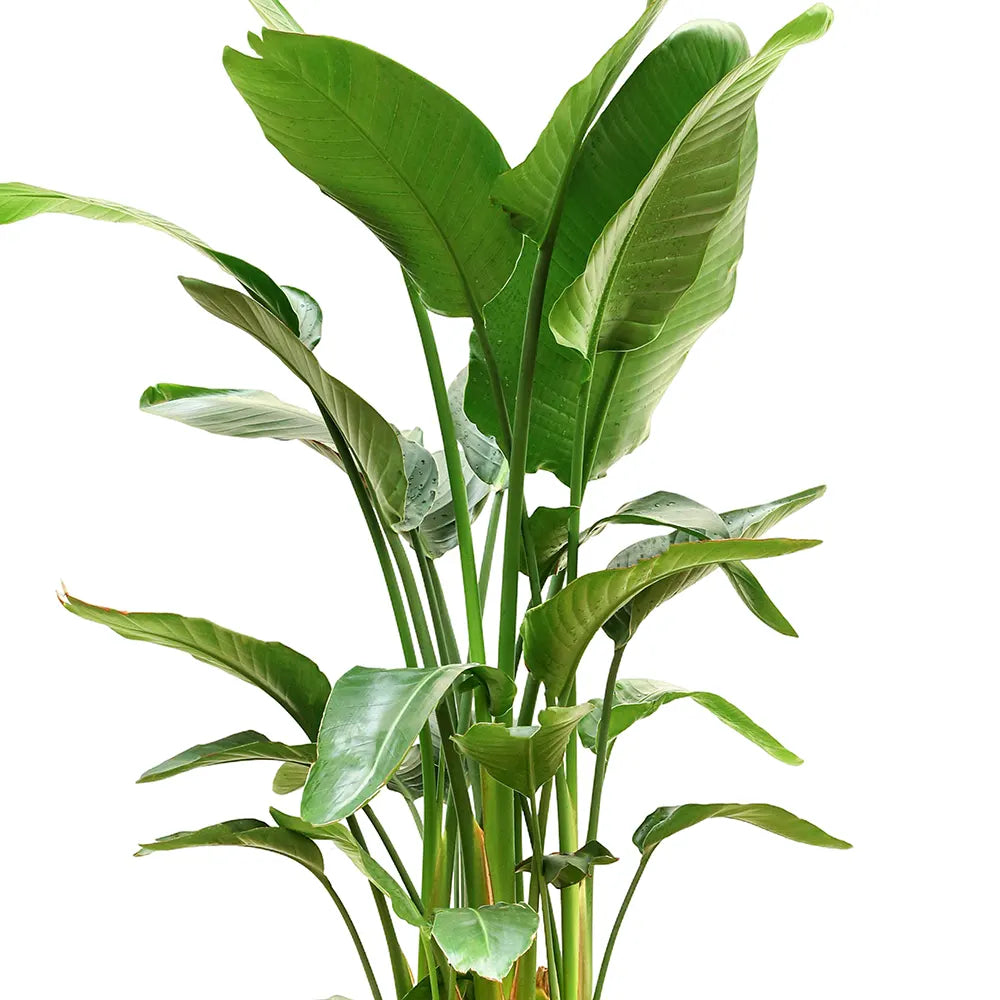 تضفي Strelitzia Nicolai لمسة استوائية مذهلة على حديقتك. أوراق ضخمة غريبة الشكل تشبه المجداف، خضراء/رمادية اللون ومرتبة على شكل مروحة في أعلى السيقان، تعطي تأثيرًا فوريًا وإحساسًا بالغابة.