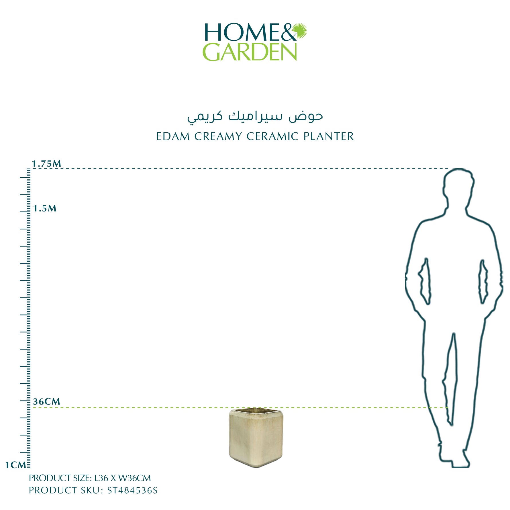 حوض زراعة سيراميك إيدام الكريمي مصنوع من سيراميك عالي الجودة ليضفي لمسةً أنيقةً ومتينةً على نباتاتك الداخلية والخارجية. يضفي لونه الكريمي لمسةً من الأناقة على أي مساحة. فتحته الواسعة تتيح لك تنسيق نباتاتك بطرقٍ متعددة، بينما تضمن قاعدته المتينة ثباته. ارتقِ بمستوى نباتاتك اليوم مع وعاء زراعة إيدام.