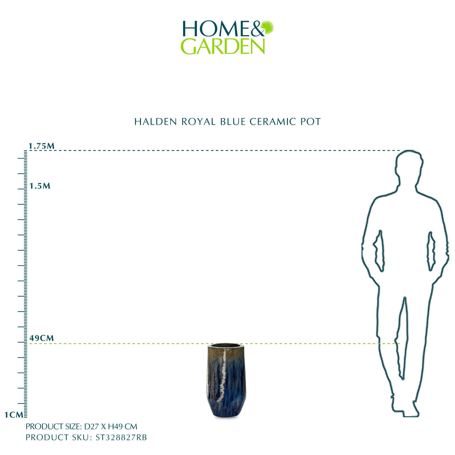 حوض هالدن - سيراميك ازرق - ارتفاع 49 سم
