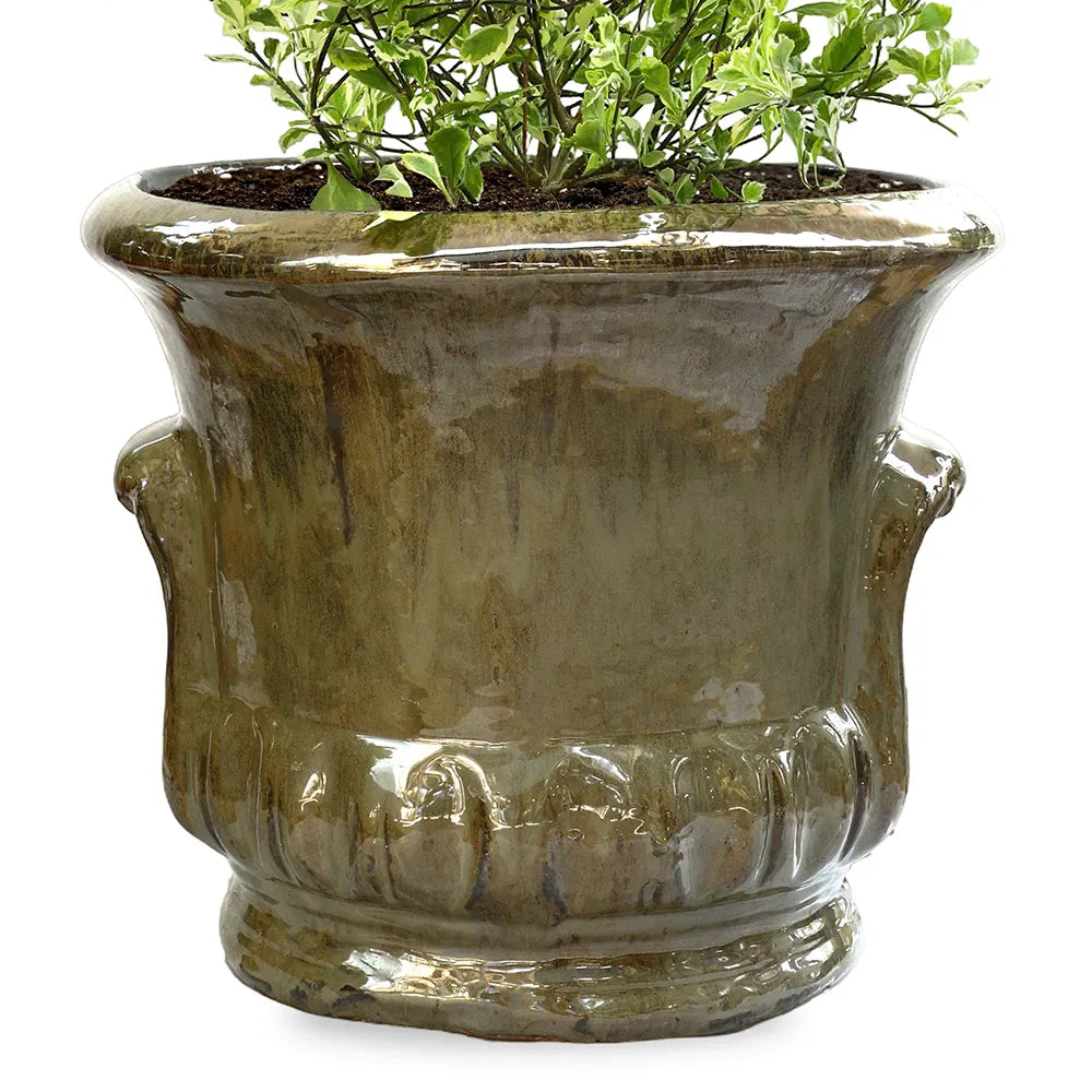 نبتة دورانتا إريكتا مبرقشة المزروعة في حوض ألميريا السيراميك الأخضر الزيتوني خيار مثالي للبيئات الخارجية، حيث تجمع بين المتانة والجمال. يزدهر هذا النبات المتنوع في ضوء الشمس المباشر أو الجزئي، مما يجعله مناسبًا تمامًا للحدائق والأفنية والشرفات. يوفر هيكل حوض ألميريا الخزفي المتين قاعدة ثابتة، ويعزز جمال أوراقه الأخّاذ بلمسته الخضراء المتناسقة. صُممت هذه التركيبة لتكون مرنة في الهواء الطلق، وتوفر إضافة أنيقة وسهلة العناية لأي مساحة خارجية، مما يدعم نموًا صحيًا ويعزز جمال حديقتك.
