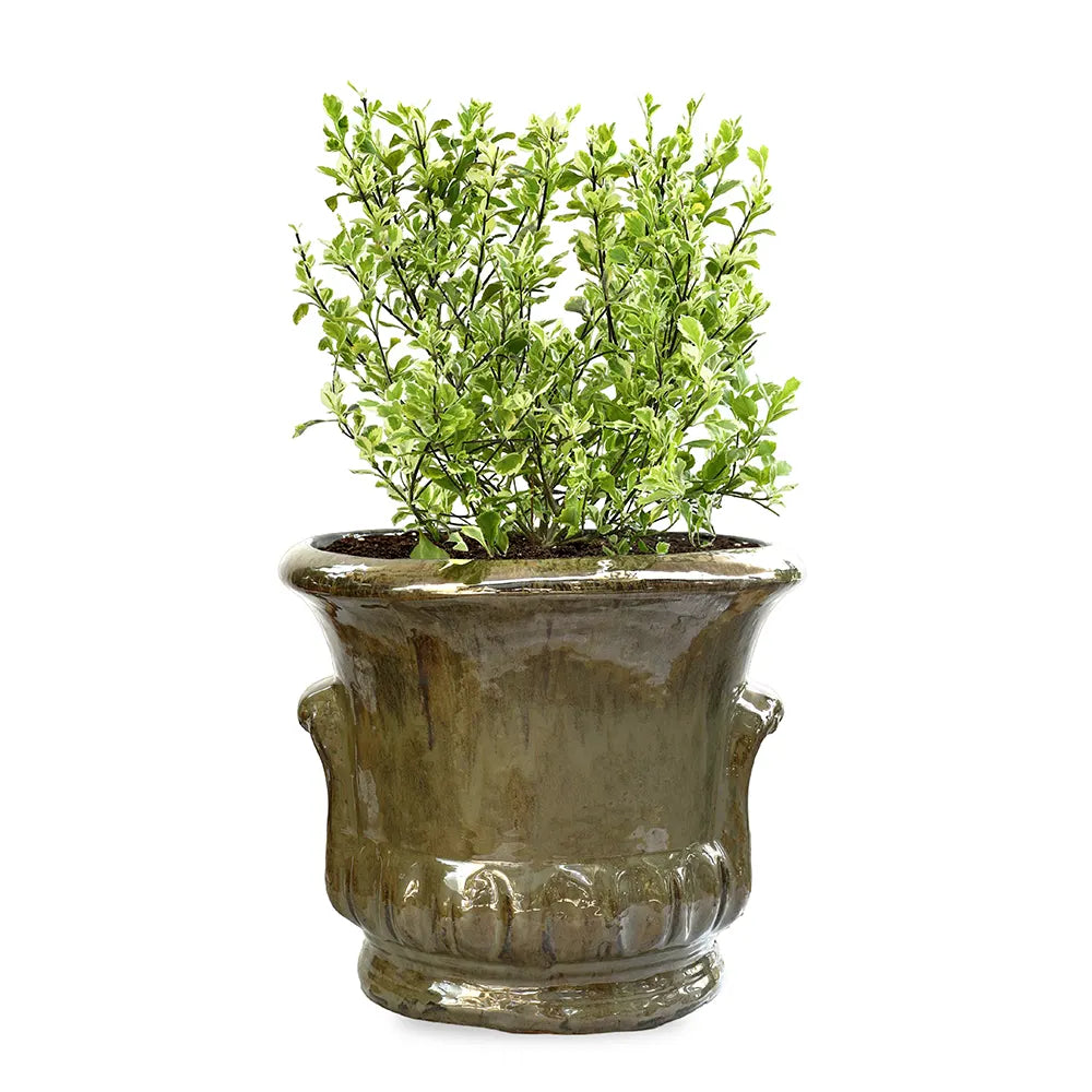 دورانتا إيريكتا مبرقشة - في حوض سيراميك أخضر زيتوني - ارتفاع 60 سم