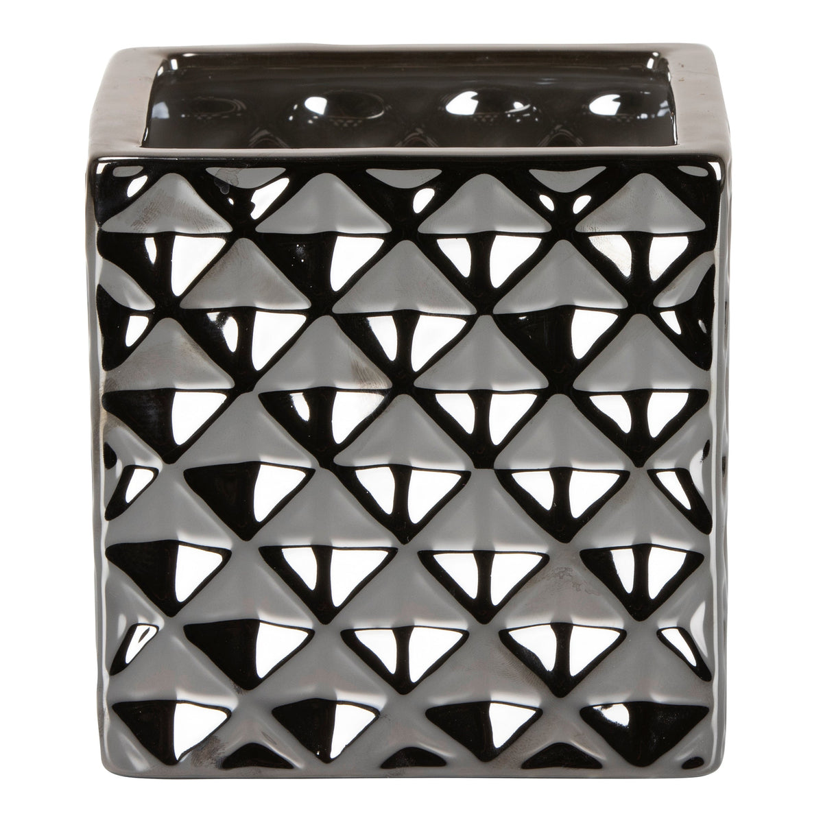 طاسة نبات آشفيل بتيتانيوم-فضي لامع مصنوعة من سيراميك عالي الجودة، مما يوفر القوة والجمال. تصميمها الماسي المقعر والشكل المكعب يجعلها إضافة رائعة لأي ديكور. مثالية لعرض الزهور الملونة أو النباتات العصارية، وتضيف سحرًا لمنزلك أو مكتبك.