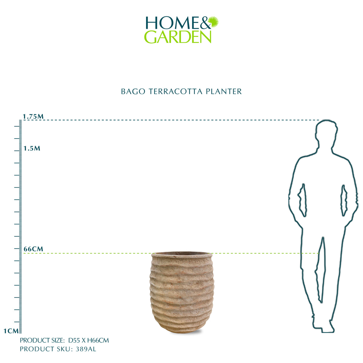 حوض باجو تيراكوتا مصنوع من تيراكوتا متين، يوفر تهوية ممتازة لنمو صحي للجذور. تصميمه المتين ولمسته النهائية الكلاسيكية تجعله خيارًا موثوقًا وأنيقًا للحدائق الداخلية والخارجية. مناسب لأنواع مختلفة من النباتات، ويدعم صحة النباتات المثلى من خلال تنظيم الرطوبة بشكل طبيعي.