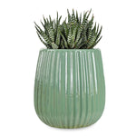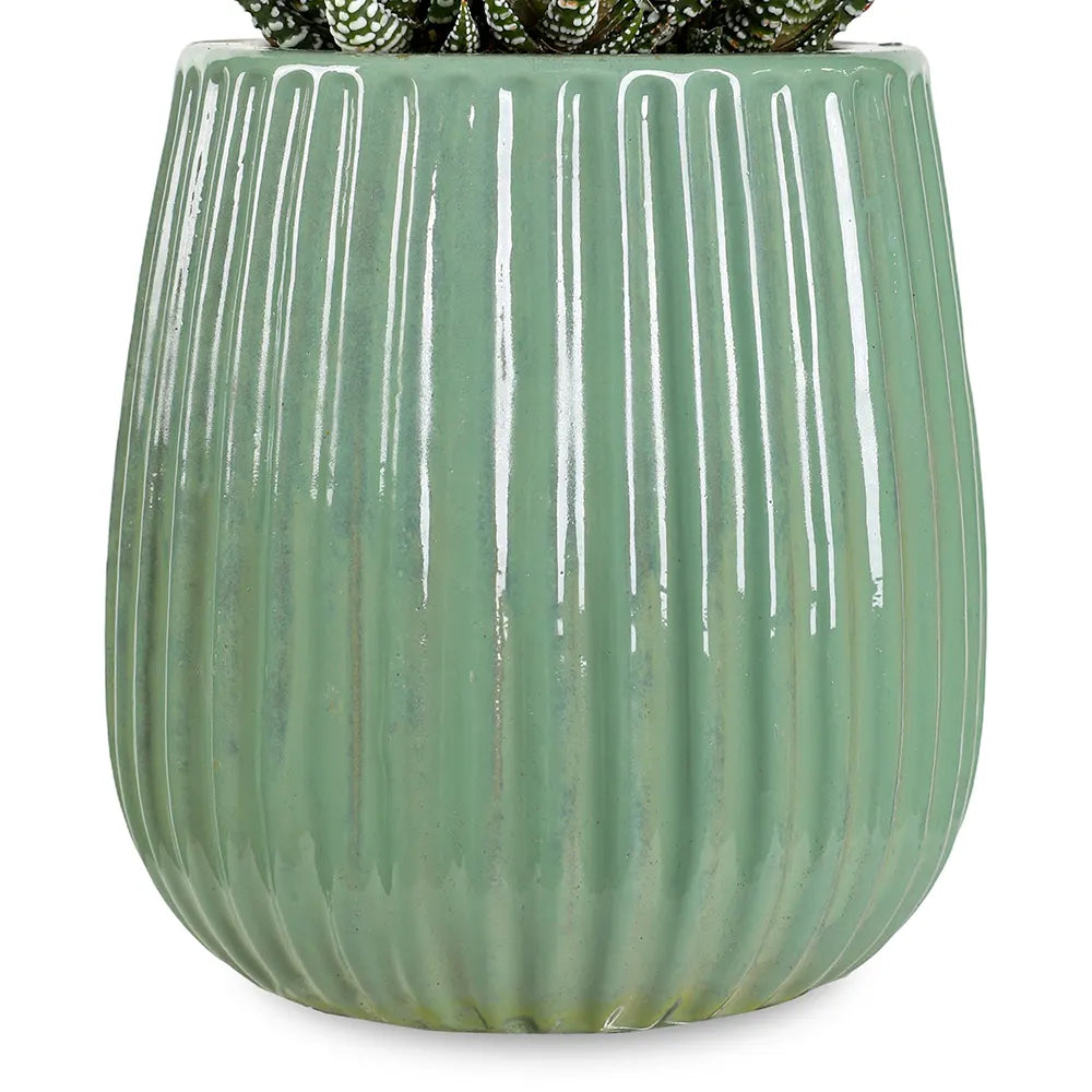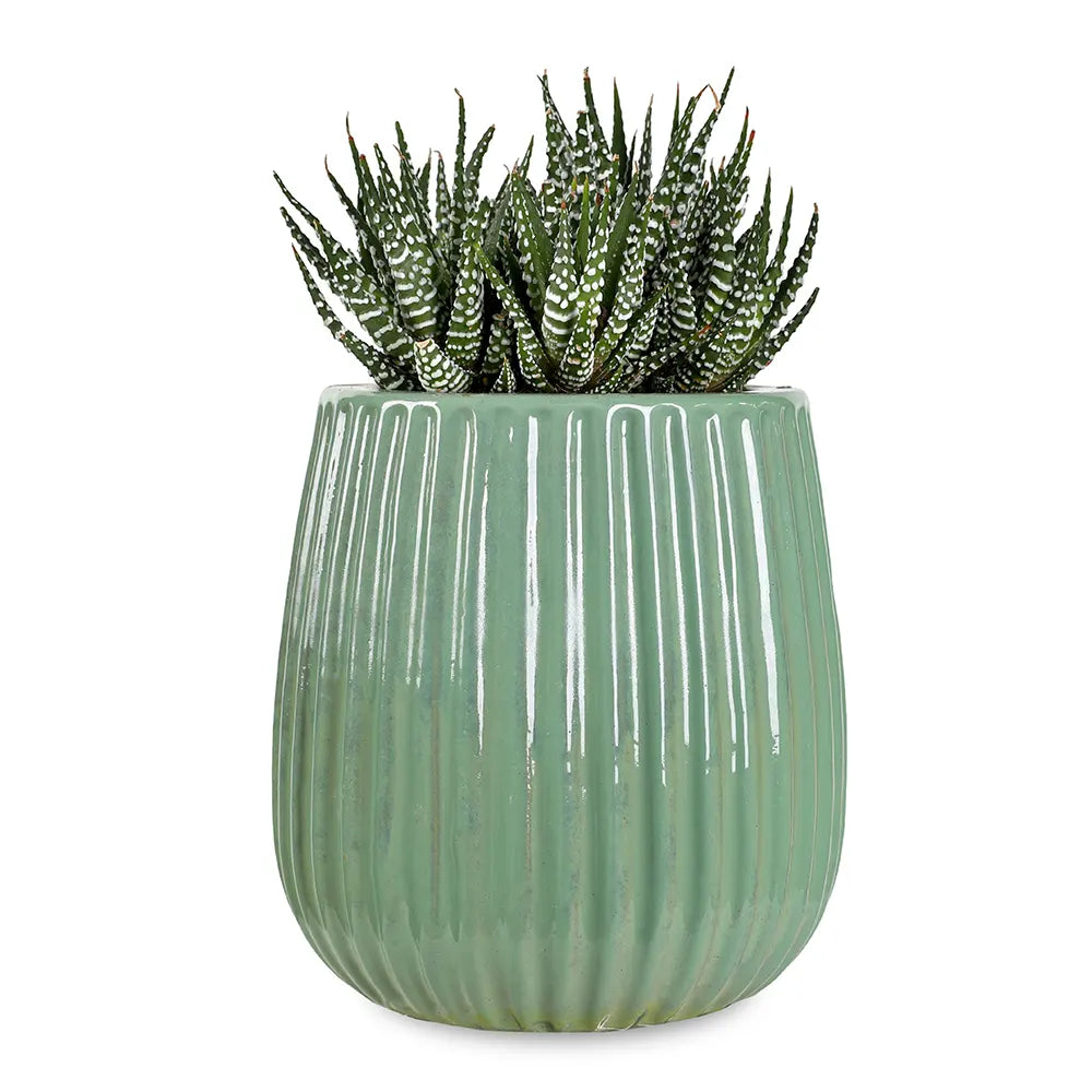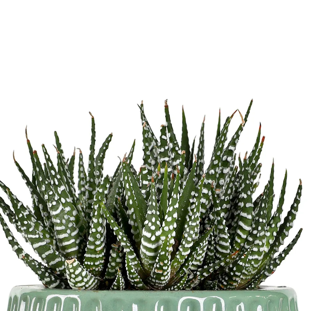 هاوورثيا نبات عصاري رائع، يُقدّر لشكله الهندسي المتوّج وسهولة العناية به، مما يجعله مثاليًا لهواة جمع النباتات وعشاق النباتات على حد سواء. تأتي هذه النبتة في حوض سيراميك أخضر أنيق يُكمّل أوراقها المعمارية. تزدهر هاوورثيا في ضوء ساطع وغير مباشر، وتتطلب الحد الأدنى من الري، حيث تخزن الرطوبة في أوراقها السميكة. مثالية للمكاتب، والأرفف، تُضفي هذه النبتة المدمجة لمسةً خضراء راقية على أي مساحة داخلية دون الحاجة إلى عناية مُكثّفة.