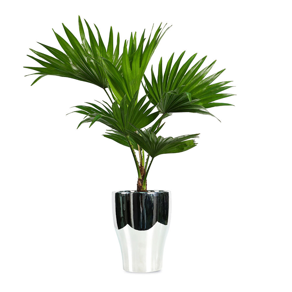 نخلة ليفستونيا أنيقة في حوض أوهايو. يتميز هذا النبات المعماري بأوراقه المروحية الشكل التي تُضفي عليه مظهرًا خلابًا، بينما يُعزز الحوض العاكس الضوء والمساحة في أي غرفة. يتطلب ريًا معتدلًا وأشعة شمس غير مباشرة لنمو مثالي. قطعة فنية مميزة تُناسب المناظر الطبيعية الداخلية المميزة.