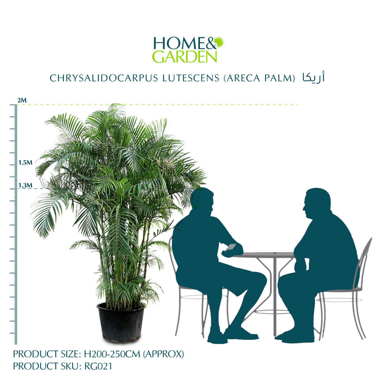 Chrysalidocarpus lutescens، المعروف باسم نخلة أريكا أو نخلة الفراشة، هو نوع من أنواع النخيل الداخلية الرائعة والشائعة. ويتميز بسعفه الريشية المقوسة التي تخرج من جذع رفيع يشبه القصب. موطنها الأصلي مدغشقر، تزدهر هذه النخيل في الضوء الساطع وغير المباشر وتفضل الظروف الرطبة. إنها مناسبة تمامًا للبيئات الداخلية ويمكن أن يصل طولها إلى عدة أقدام عند الاعتناء بها بشكل صحيح. تُقدر نخلة أريكا بصفاتها المنقية للهواء وقدرتها على إضافة لمسة استوائية إلى أي مساحة، مما يجعلها الخيار المفضل لديكور المنزل والمكتب.