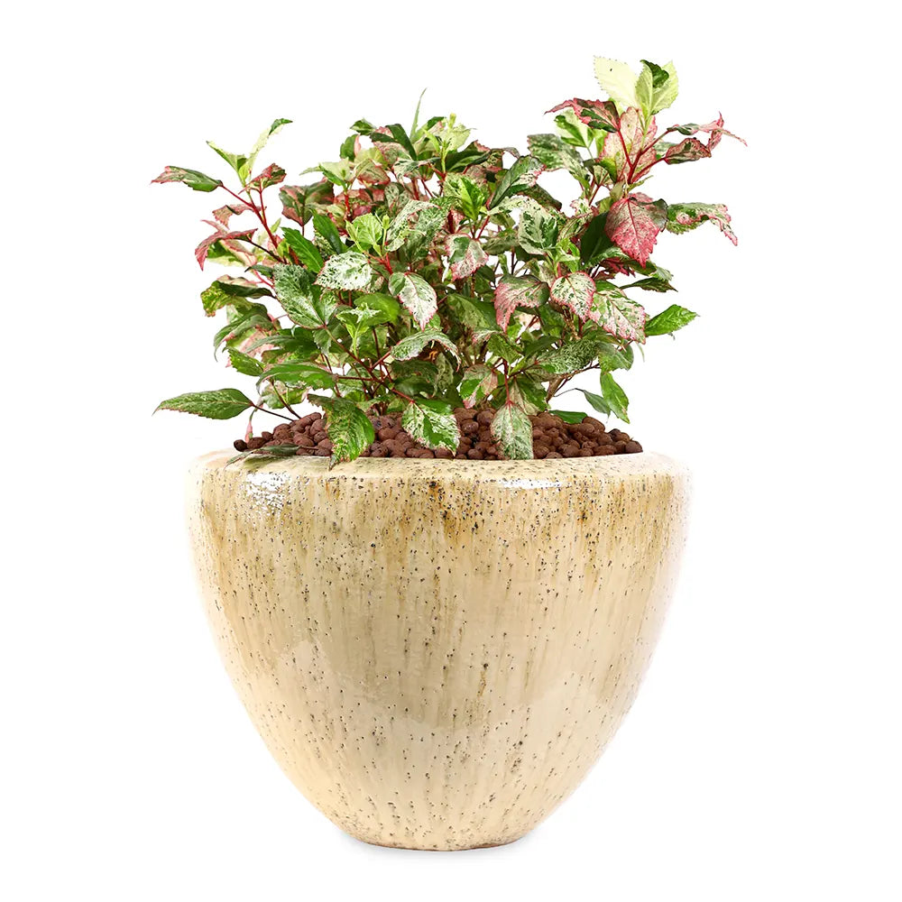 سعر الوحدة / لكلأضف لمسةً مميزةً إلى مساحتك الخارجية مع هيبسكس روزا المزروعة في حوض سيراميك كريمي. يُضفي هذا المزيج الأنيق أزهارًا نابضة بالحياة، مع حوض أنيق ومتين مصمم لتحمل الظروف الخارجية. يُعدّ مثاليًا لإضافة لمسة من الجمال الطبيعي الراقي إلى الباحات والحدائق والشرفات، حيث يجمع بين الجاذبية الجمالية والأداء الموثوق في البيئات الخارجية.