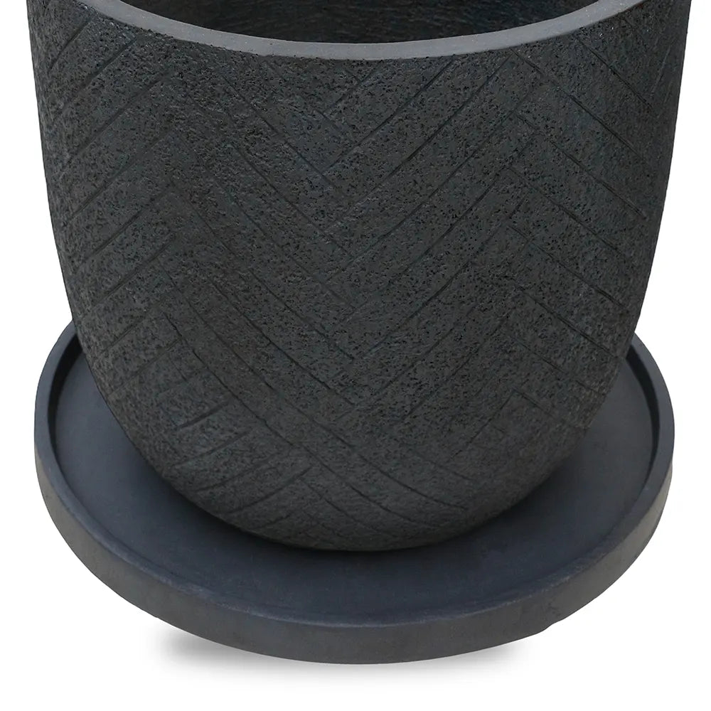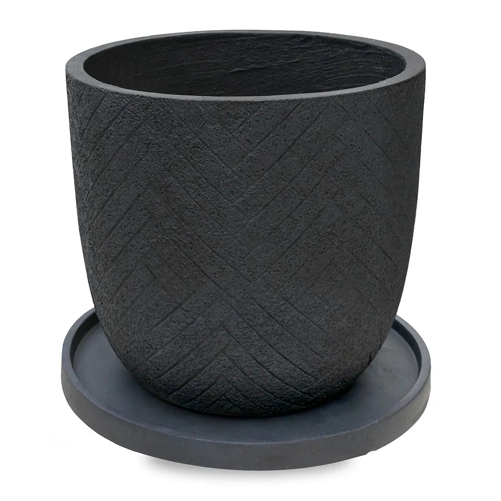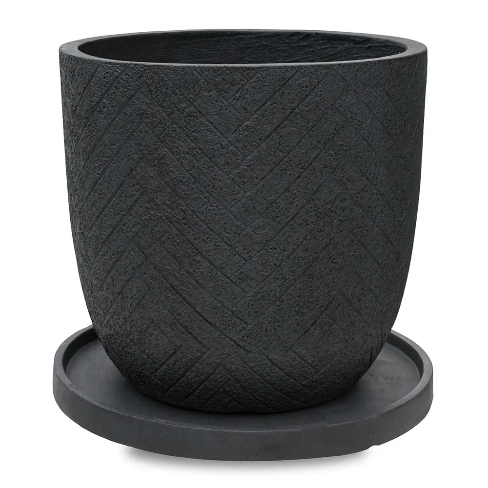 The VOLENDAM BLACK POT D43 CM combines contemporary design with practical durability. Crafted from lightweight fiber material, this 43cm diameter planter offers excellent weather resistance, making it ideal for both indoor and outdoor garden settings.