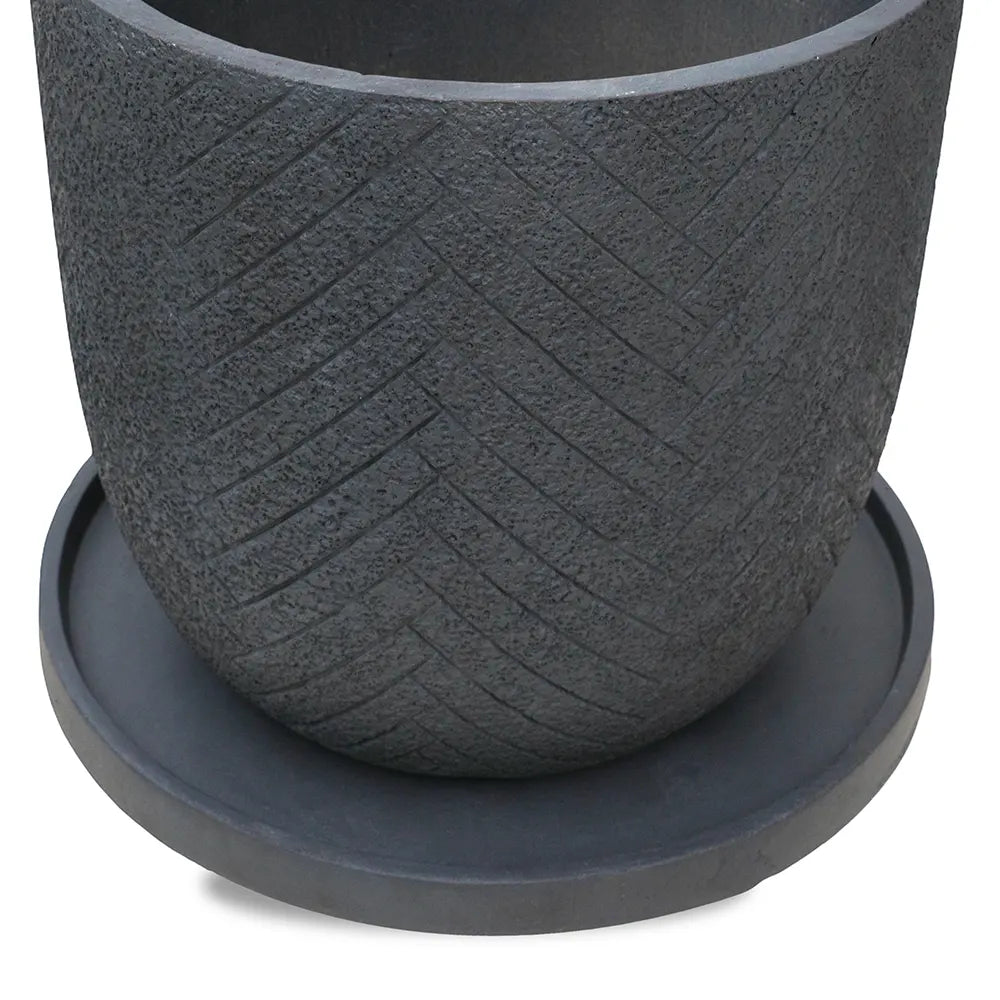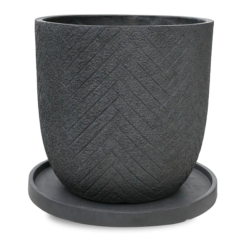 The VOLENDAM BLACK POT D51 CM combines contemporary design with practical durability. Crafted from lightweight fiber material, this 51cm diameter planter offers excellent weather resistance, making it ideal for both indoor and outdoor garden settings.