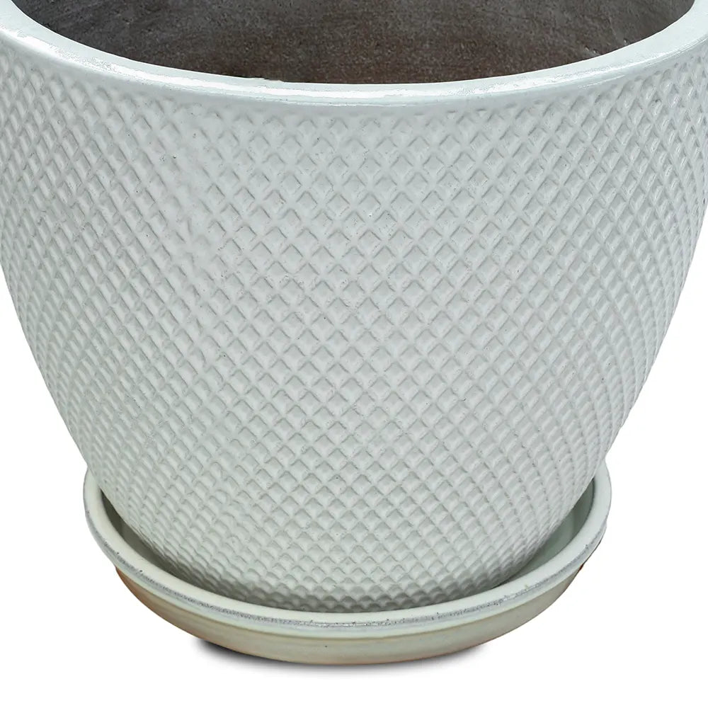 The SNOPA White Ceramic Planter features a 48 cm diameter, offering a sturdy and elegant solution for showcasing your plants. Made from premium ceramic, it ensures optimal moisture retention and root protection, fostering healthy plant growth. Its refined white finish complements various decor styles, making it ideal for enhancing both indoor and outdoor spaces with a clean, sophisticated look.