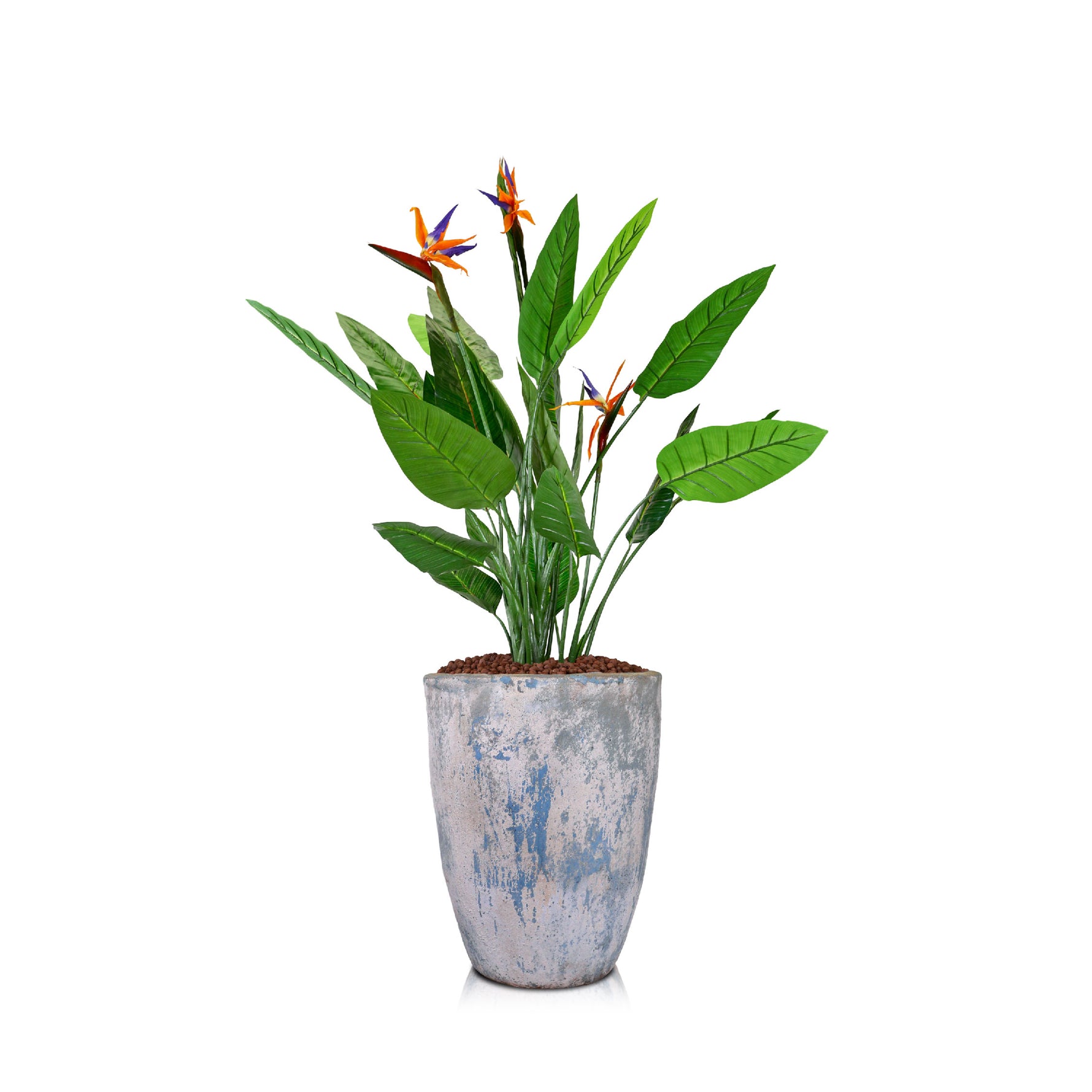 ARTIFICIAL BIRD OF PARADISE IN FRANEKER BLUE CERAMIC PLANTER - عصفور الجنة صناعي في حوض