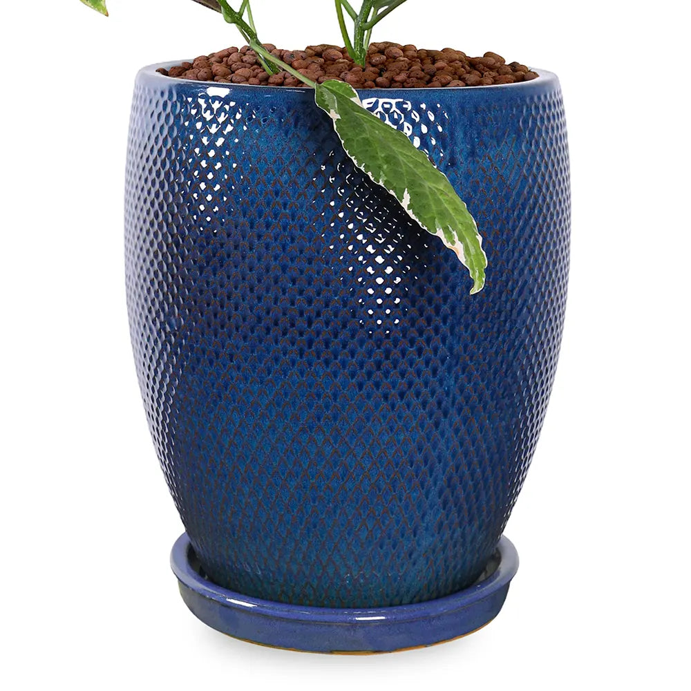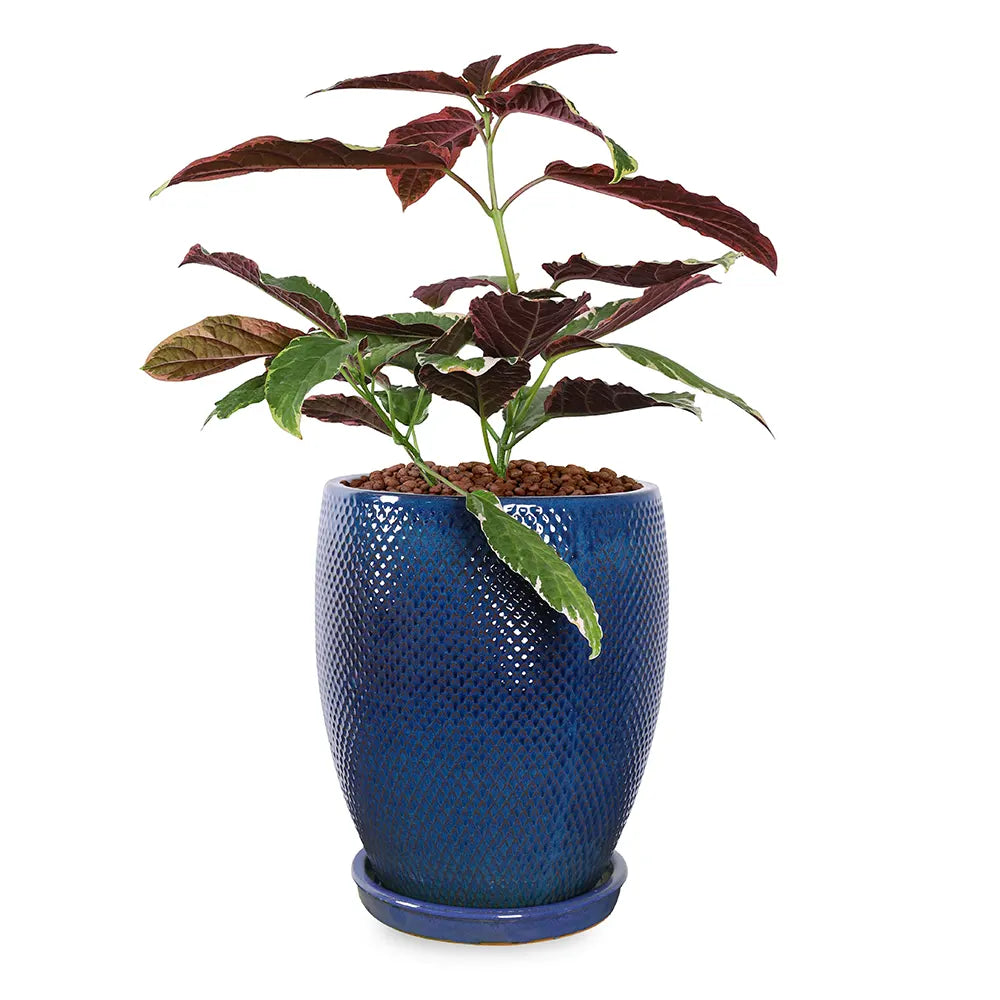 CODIAEUM IN BAHIA BLUE CERAMIC PLANTER
