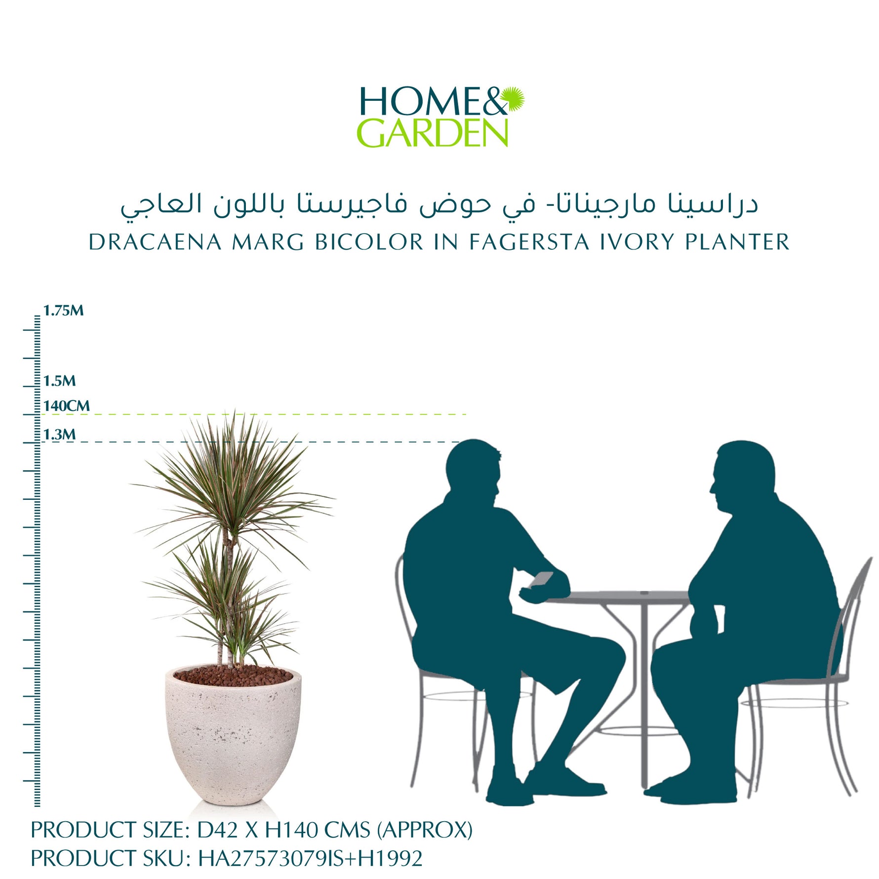 DRACAENA MARG BICOLOR IN FAGERSTA IVORY PLANTER - دراسينا مارجيناتا- في حوض فاجيرستا باللون العاجي