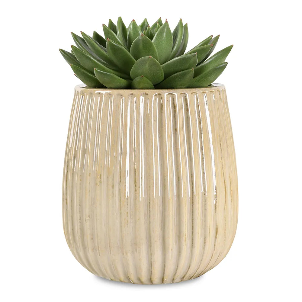 A thoughtfully curated gift for the discerning plant lover, this echeveria succulent arrives in an elegant Crean ceramic vessel that elevates any interior. Hand-selected for its vibrant rosette structure, this botanical specimen requires minimal care—thriving on bright light and infrequent watering. Perfect for those seeking sustainable, living décor, the echeveria's architectural form and soft, fleshy foliage create a sophisticated focal point. The boutique-quality ceramic pot ensures this gift feels premium and intentional, making it an ideal present for housewarming celebrations, wellness enthusiasts, or anyone who appreciates cultivated beauty with effortless elegance.