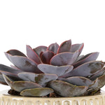 Echeveria Perle is a distinguished succulent cultivar celebrated for its compact rosette structure and ethereal foliage that shifts from pale jade to soft mauve hues. This drought-tolerant species flourishes under bright conditions with infrequent watering, making it exceptionally low-maintenance. Presented in a cream ceramic vessel, the pot's neutral aesthetic enhances the plant's delicate coloration while ensuring superior drainage and aeration. Ideal for collectors seeking architectural interest or anyone desiring a sophisticated, care-free botanical accent, this pairing delivers both horticultural merit and visual refinement to shelves, desks, or garden displays.