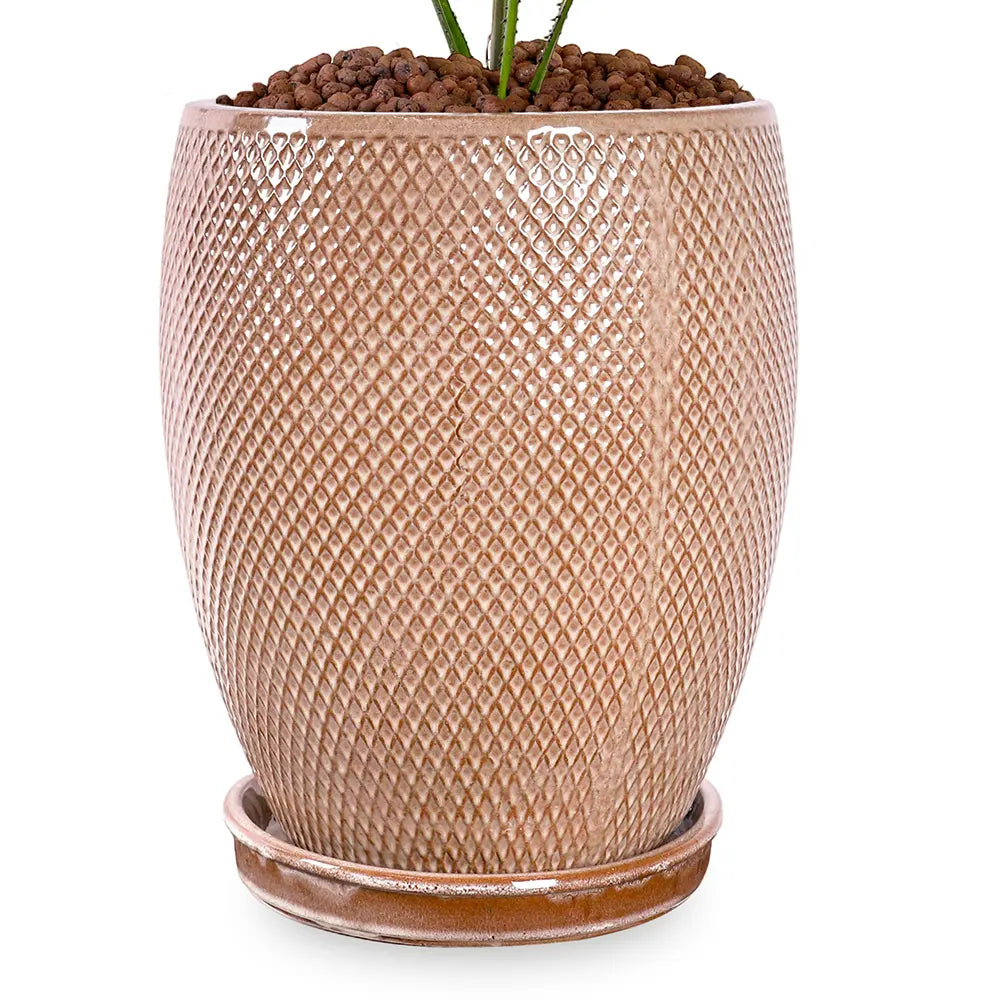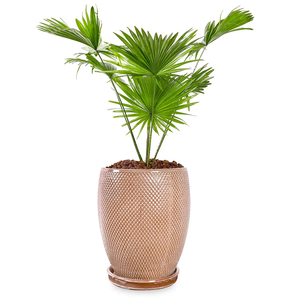 The Livistonia in Bahia Brown Ceramic Planter is expertly designed for indoor use, combining durability with aesthetic sophistication. Its high-quality ceramic construction in a warm Bahia brown tone creates a stable, moisture-retentive environment ideal for houseplants. This planter enhances indoor spaces with its elegant, earthy finish, making it a refined choice for plant enthusiasts seeking both style and functionality.