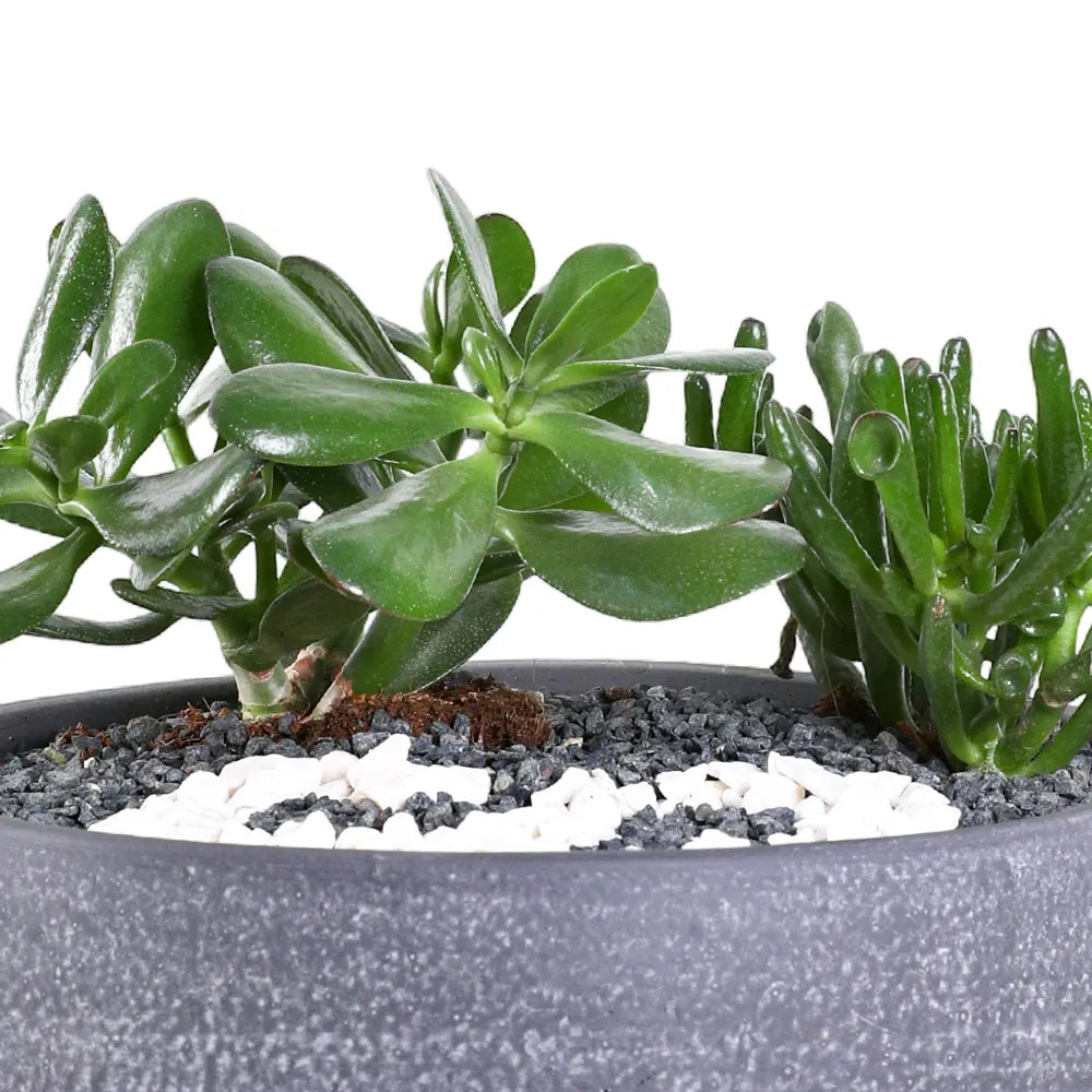 Unit price / perThis elegant arrangement of mixed succulents in a sleek grey bowl combines low-maintenance greenery with modern design. Ideal for adding a touch of natural sophistication to any indoor space, these succulents thrive with minimal care, making them perfect for busy environments or those new to plant care. The neutral grey bowl complements various décor styles while providing a stable, stylish home for the plants.