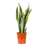 Sansevieria Trifasciata Laurentii is a striking architectural plant featuring distinctive variegated foliage with golden-yellow margins that brighten any interior space. Standing at 75cm in height, this mature specimen makes an immediate visual impact. Known for exceptional resilience, it thrives in low to bright indirect light and requires minimal watering, making it ideal for busy plant enthusiasts. The upright, sword-like leaves add contemporary elegance to modern décor while improving air quality. Perfect for offices, living rooms, or bedside tables, this cultivar combines aesthetic appeal with undemanding care requirements, ensuring long-term success even for novice gardeners.