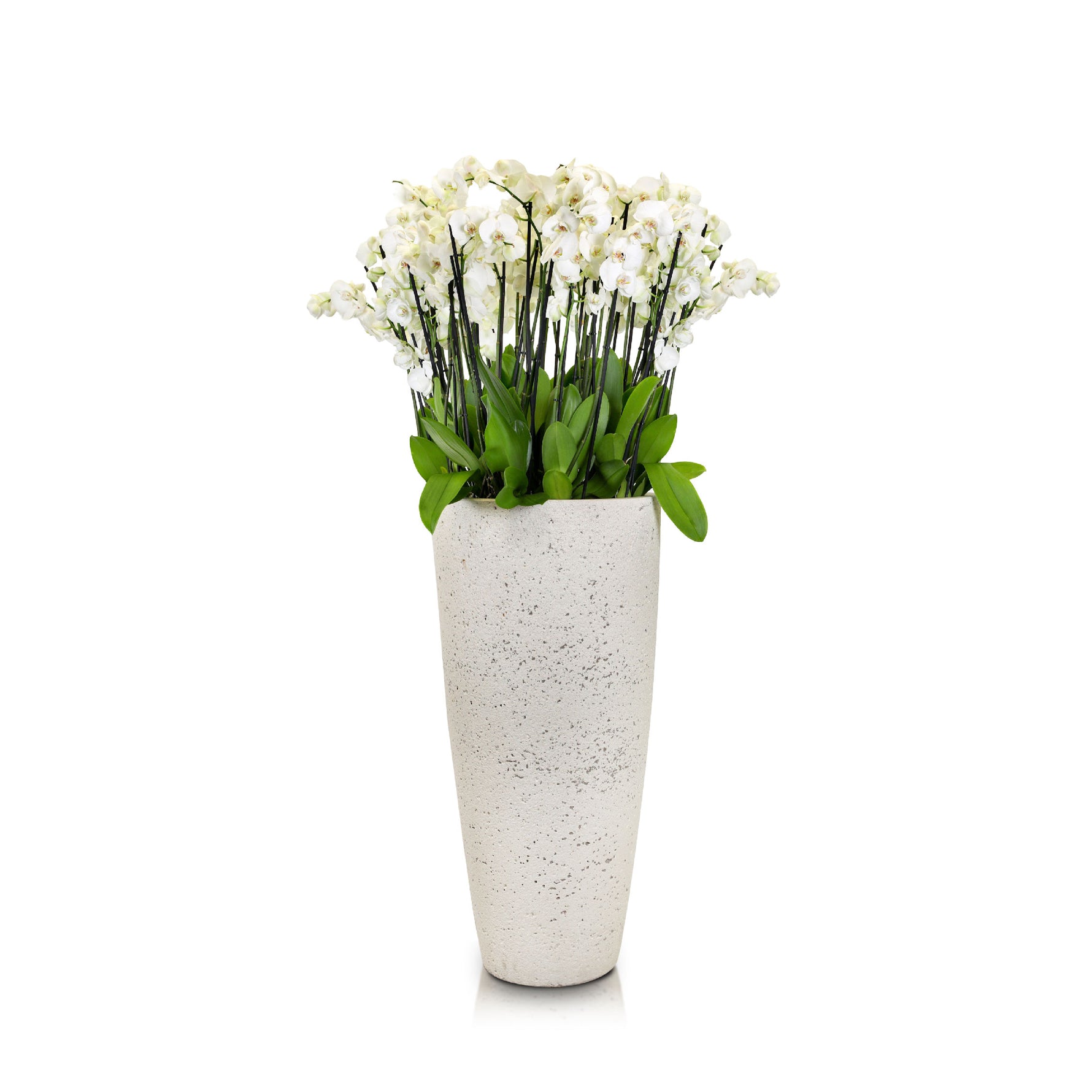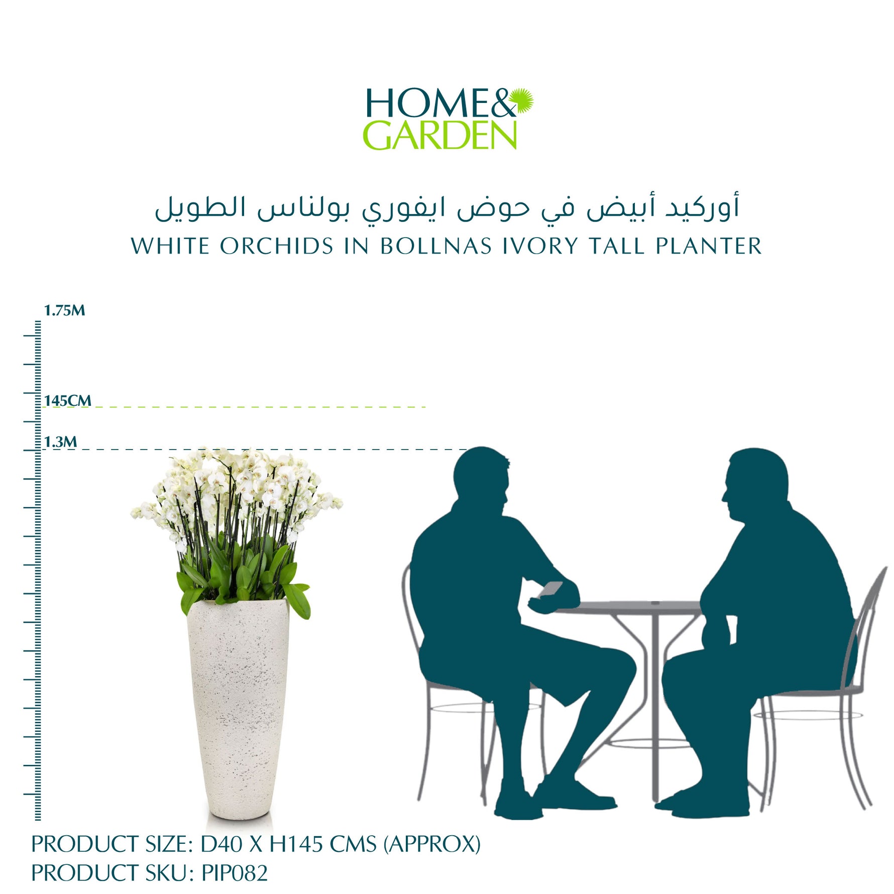 WHITE ORCHIDS IN BOLLNAS IVORY TALL PLANTER - أوركيد أبيض في حوض ايفوري بولناس الطويل