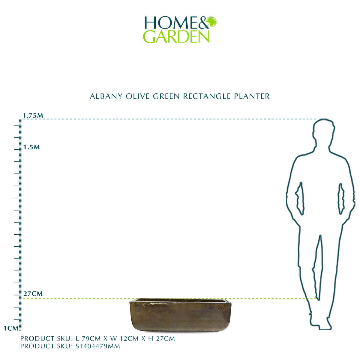 ALBANY OLIVE GREEN RECTANGLE PLANTER L79 CM