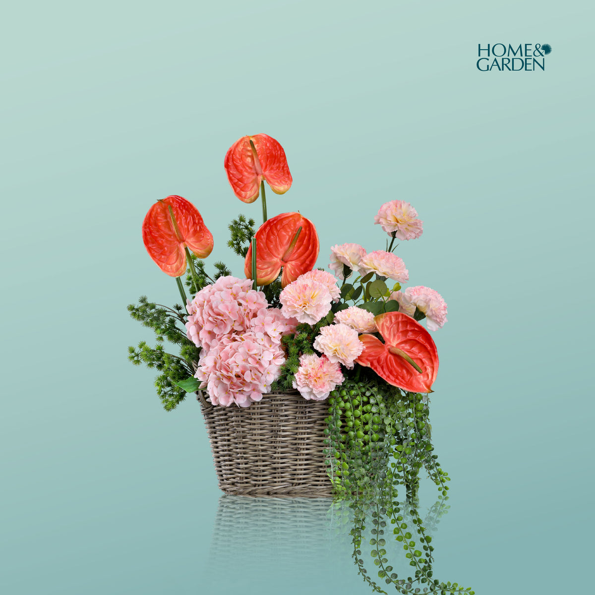 ARTIFICIAL CORAL ANTHURIUM BASKET