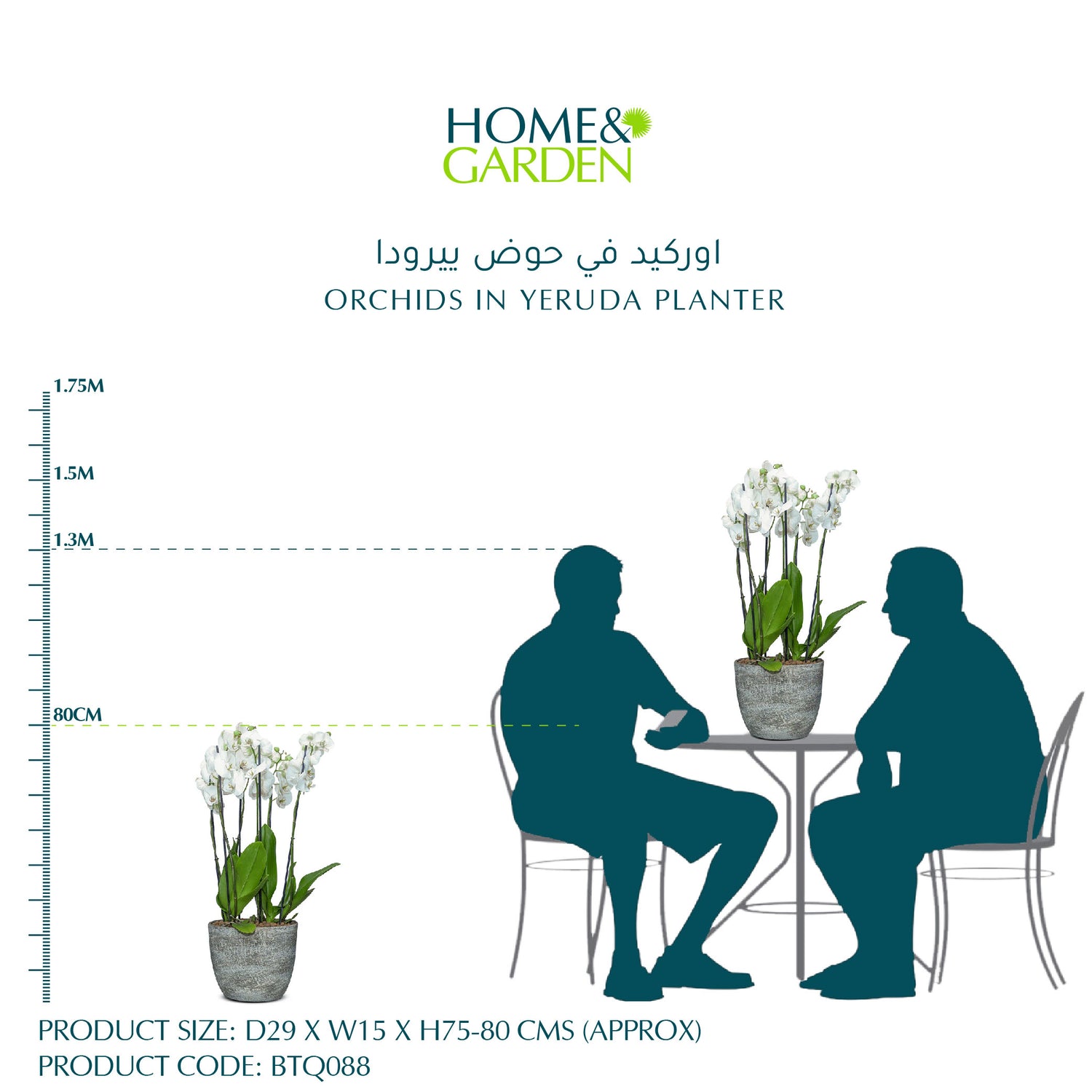 Elevate your space with the Orchid in Yeruda Planter, combining the delicate beauty of an orchid with the sleek, modern design of the Yeruda planter. This arrangement offers a sophisticated touch to any interior, requiring minimal care while providing lasting elegance. Ideal for enhancing home or office environments, it brings natural charm and refined style effortlessly.