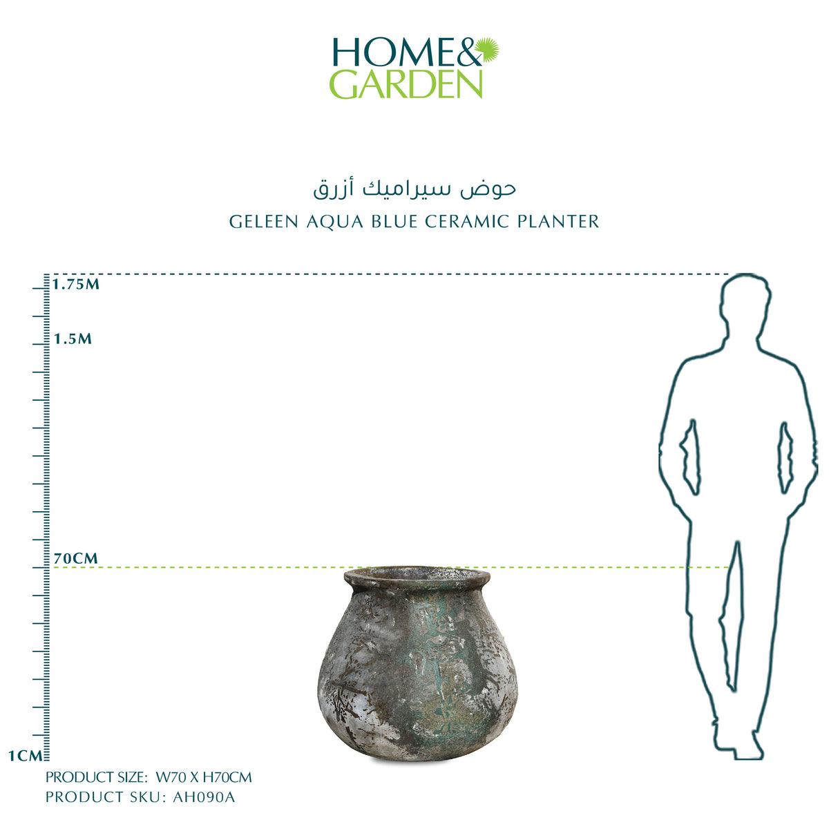 Elevate your indoor or outdoor space with the GELEEN AQUA BLUE CERAMIC PLANTER. Made with high-quality, ceramic material, this planter features an antique finish that adds a touch of elegance and sophistication to any decor. Enhance your plants health while adding a stylish touch to your space.