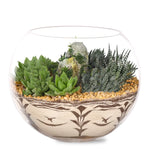 Experience the beauty of nature with our Succulent Plants in Terrarium. These desert plants require minimal care and bring a touch of greenery to any room. Each Terrarium comes with a variety of plants, adding interest and texture. Enjoy the benefits of low-maintenance, air-purifying plants in a stunning display.